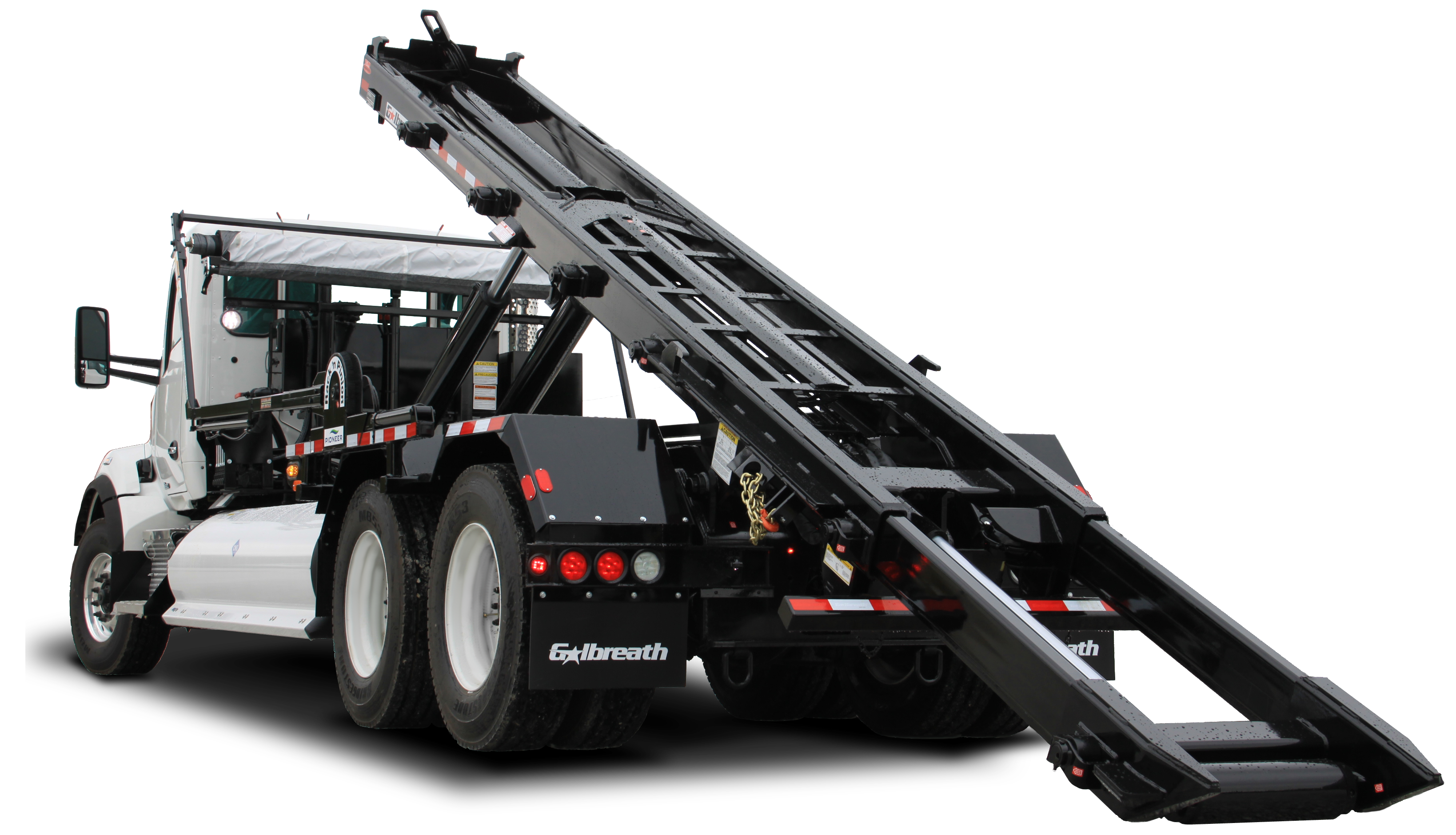 SIstemas portacontenedores de polipasto o cable, con capacidad de hasta 75,000 libras, utilizados comunmente en las operaciones de gestión de residuos.